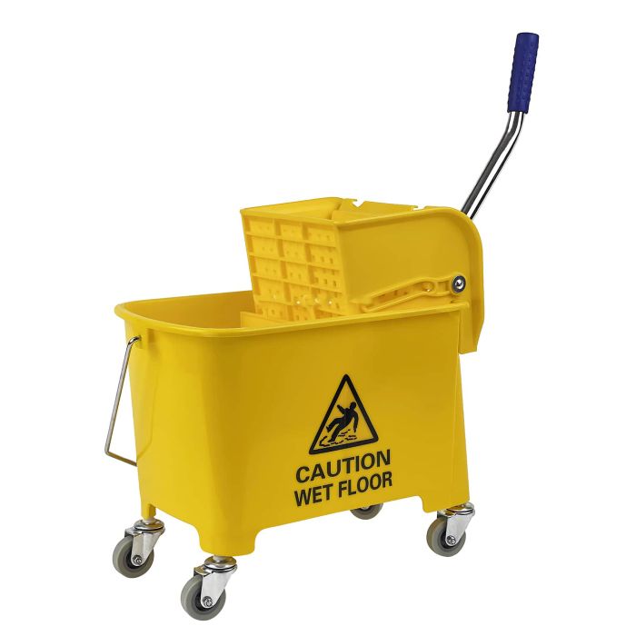 - Has a printed “Caution, wet floor” sign to prevent slippages & other hazards.
